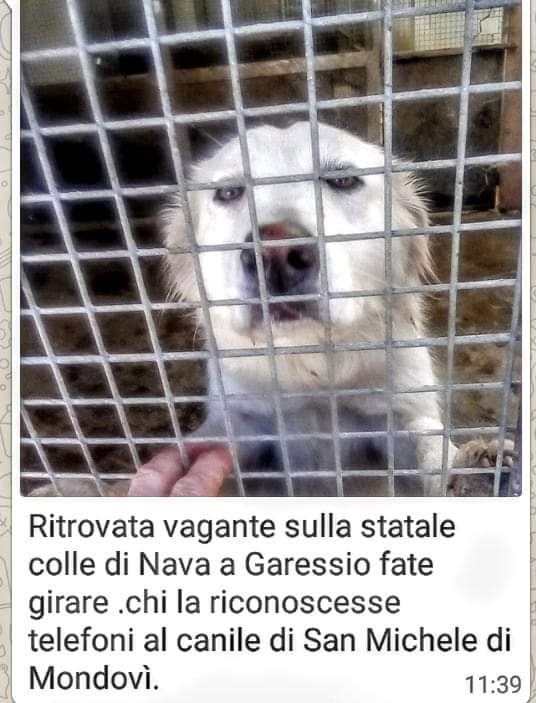 Molly è una femmina di pastore maremmano ritrovata a Garessio.
