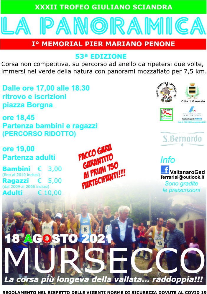 Dalle ore 17,00 alle ore 18,30 ritrovo e iscrizioni Piazza Borgna