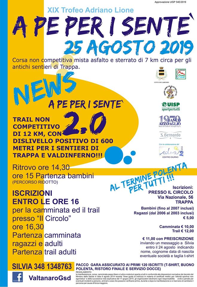 Domenica 25 agosto la festa di San Bartolomeo in frazione Trappa a Garessio si arricchirà di un nuovo appuntamento, in occasione dei “primi 40” della corsa podistica “A pè per i sentè”, organizzata dal Circolo di Trappa con GSD Valtanaro, Comune e Pro Loco sotto l’egida UIsp. Ritrovo fissato per le ore 14.30 presso il Circolo di Trappa (iscrizioni entro le 16), dalle 15 le gare su percorso ridotto per i bambini fino al 2007, alle 16.30 il via alla corsa podistica non competitiva di 7 km arrivata alla 40esima edizione (in palio il XIX Trofeo Adriano Lione) con le salite verso Pianbernardo ed i Penoni, che sarà abbinata alla nuova versione 2.0, ovvero un trail non competitivo di 12 km con dislivello positivo di 600 m. che porterà fino a Valdinferno. Per questo trail che ha permesso di risistemare alcuni sentieri dismessi ed avrà passaggi spettacolari, è possibile pre-iscriversi al costo di 11 euro inviando un messaggio a Silvia al 348-1348763, indicando nome, cognome, data di nascita, società e taglia per la t-shirt). Pacco gara garantito ai primi 120 iscritti (comprensivo anche del buono polenta). Alle 19 inizierà la distribuzione di polenta saracena, salsiccia, birra e vino.