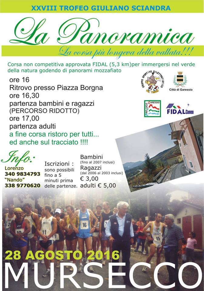 Domenica 28 agosto a Mursecco si svolgerà la corsa non competitiva (5,3 Km) per immergersi nel verde della natura godendo di panorami mozzafiato.