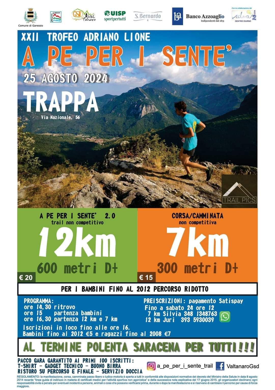 Sabato 24 e domenica 25 agosto 2024, nella Frazione Trappa di Garessio, appuntamento con la tradizionale Festa di San Bartolomeo e la Corsa non competitiva: "A pe' per i senté". (Locandine eventi allegate)