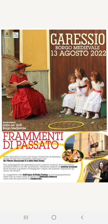 Il 13 agosto 2022, dalle ore 18,00, nelle vie del Borgo Medievale, passeggiata tra splendidi scorci e antichi androni, accompagnati dalla musica di arpa e pianoforte, avvolti dall'atmosfera dell'epoca di Re Vittorio Emanuele II e della Bela Rosin.