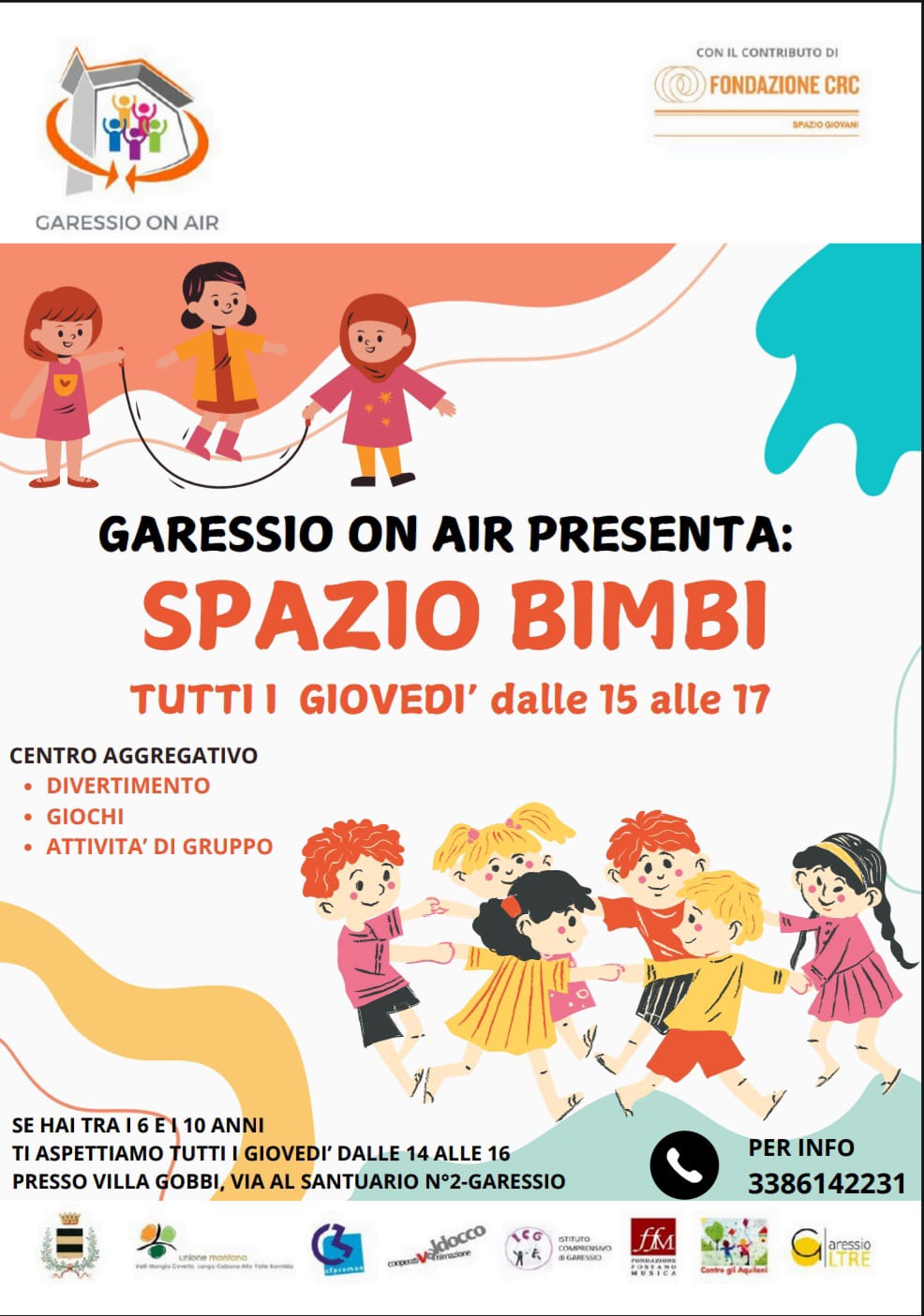 si svolgerà "Spazio bimbi" - centro aggregativo giovanile per bambini 6-10 anni.