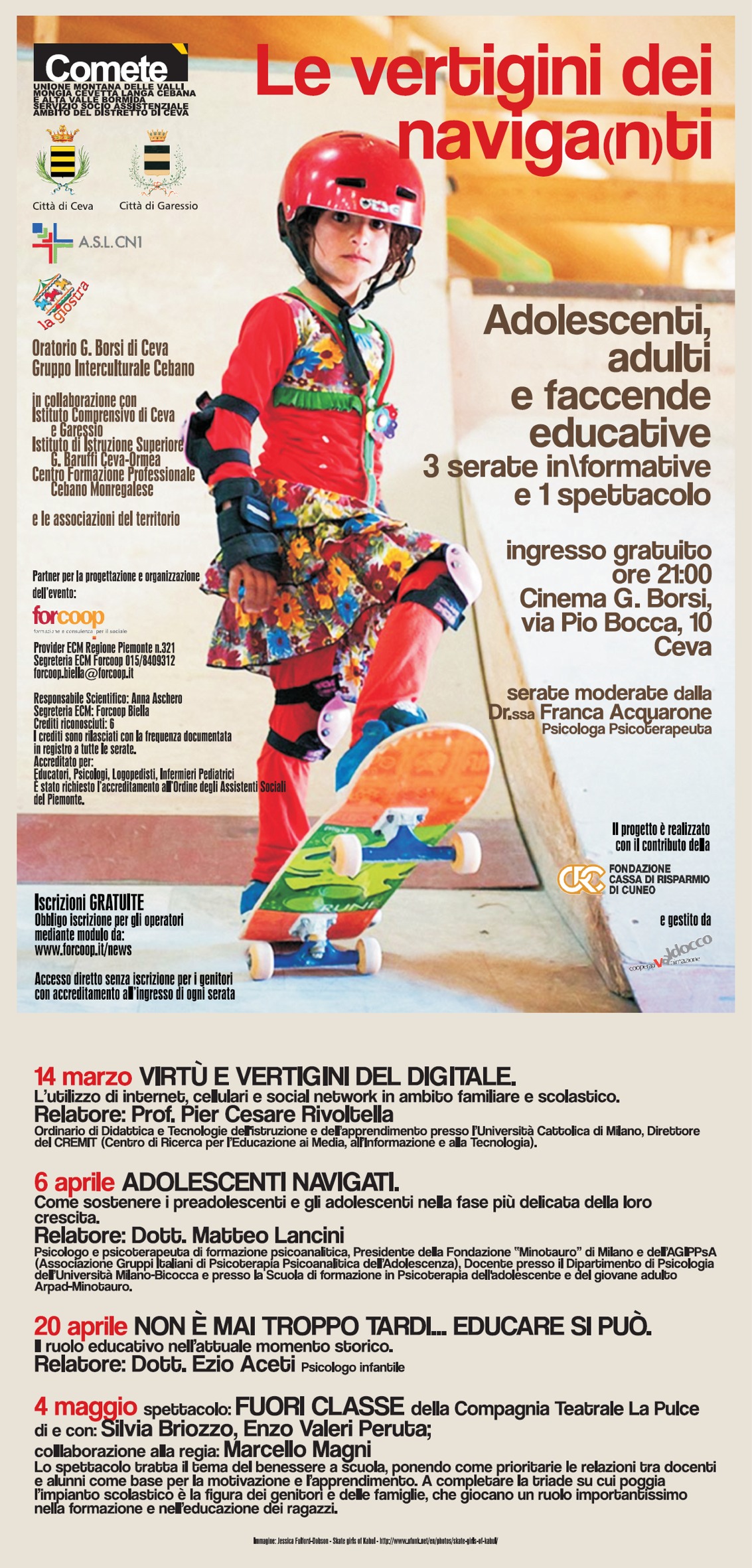14.03.2016 - 06.04.2016 - 20.04.2016 - 04.05.2016 ore 21.00 Cinema G. Borsi - Via Pio Bocca, 10 - Ceva