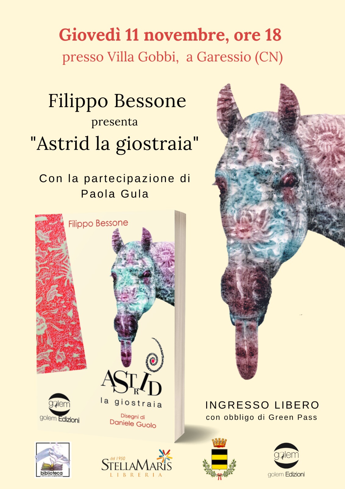 Giovedì 11 novembre 2021 alle ore 18,00 presso Villa Gobbi si svolgerà la presentazione del libro "Astrid la giostraia" di Filippo Bessone con la partecipazione di Paola Gula.