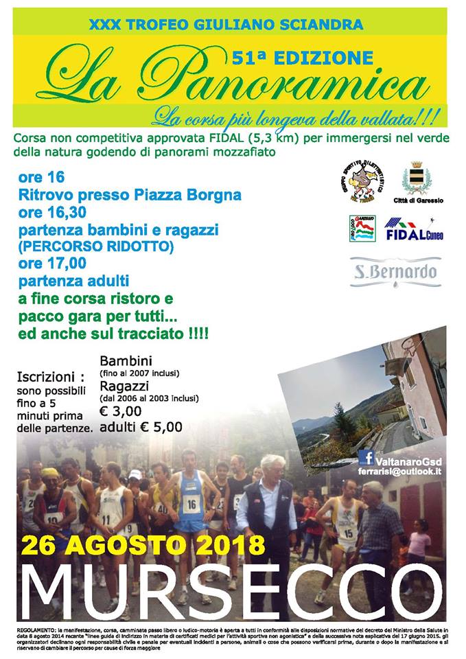 Domenica 26 agosto 2018, a Mursecco, si svolgerà la 51^ edizione de “La Panoramica” XXX trofeo Giuliano Sciandra.