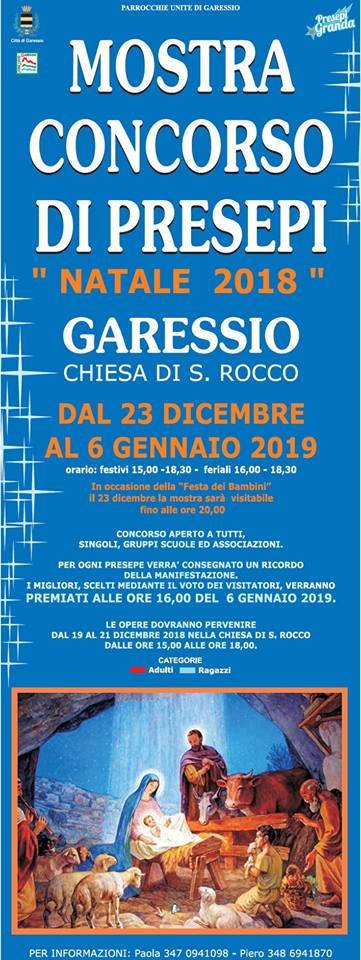 Dal 23 dicembre 2018 al 6 gennaio 2019 sarà possibile visitare la “Mostra concorso di presepi”, concorso aperto a tutti, singoli, gruppi, scuole ed associazione, che si svolgerà presso la Chiesa di S. Rocco (Borgo Ponte) con il seguente orario: