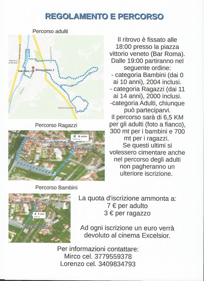 Ritrovo ore 18.00 piazza Vittorio Veneto.