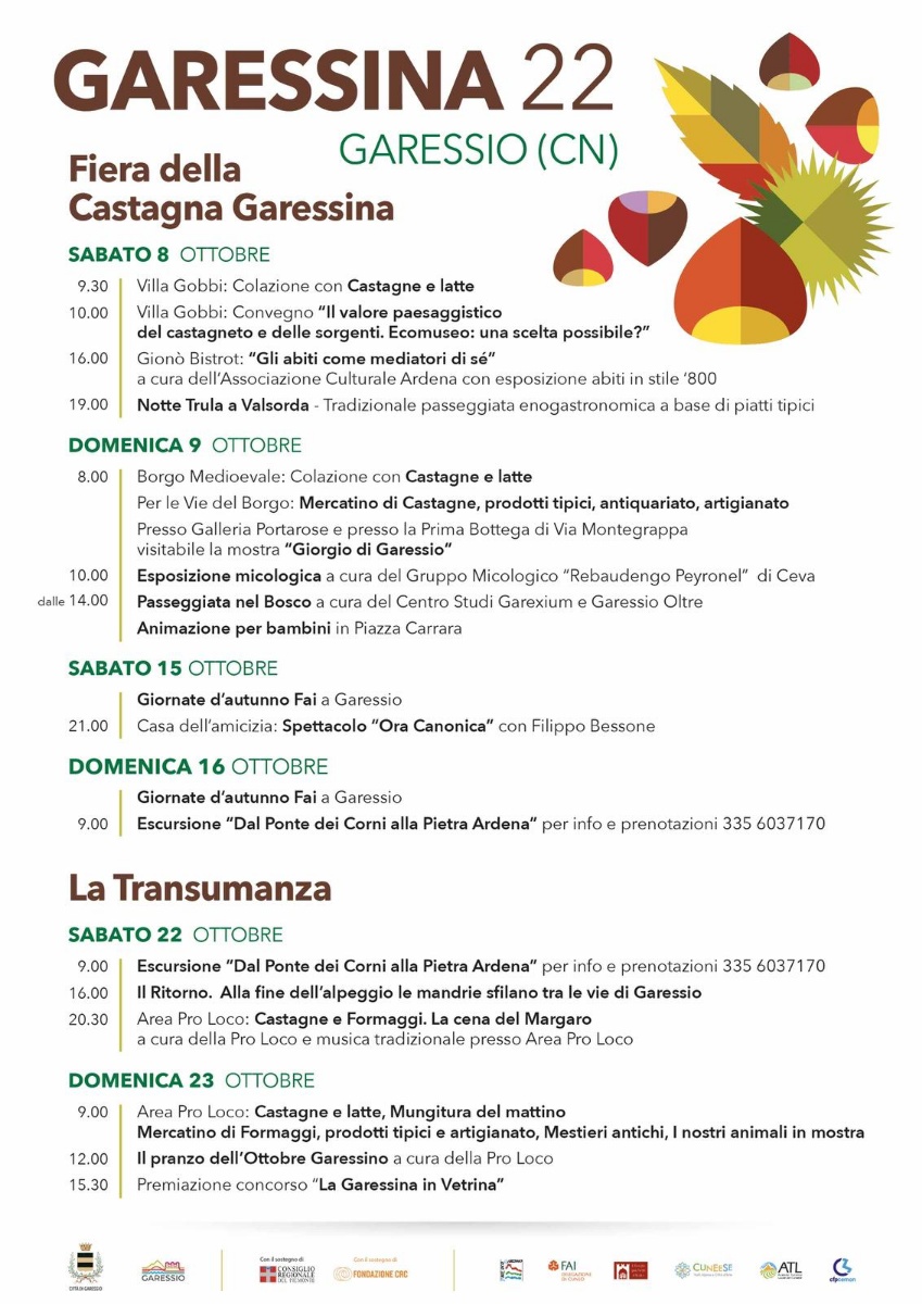 Nei fine settimana dall'8 al 23 ottobre 2022 si svolgerà "Garessina 22": Fiera della Castagna Garessina e Transumanza.
