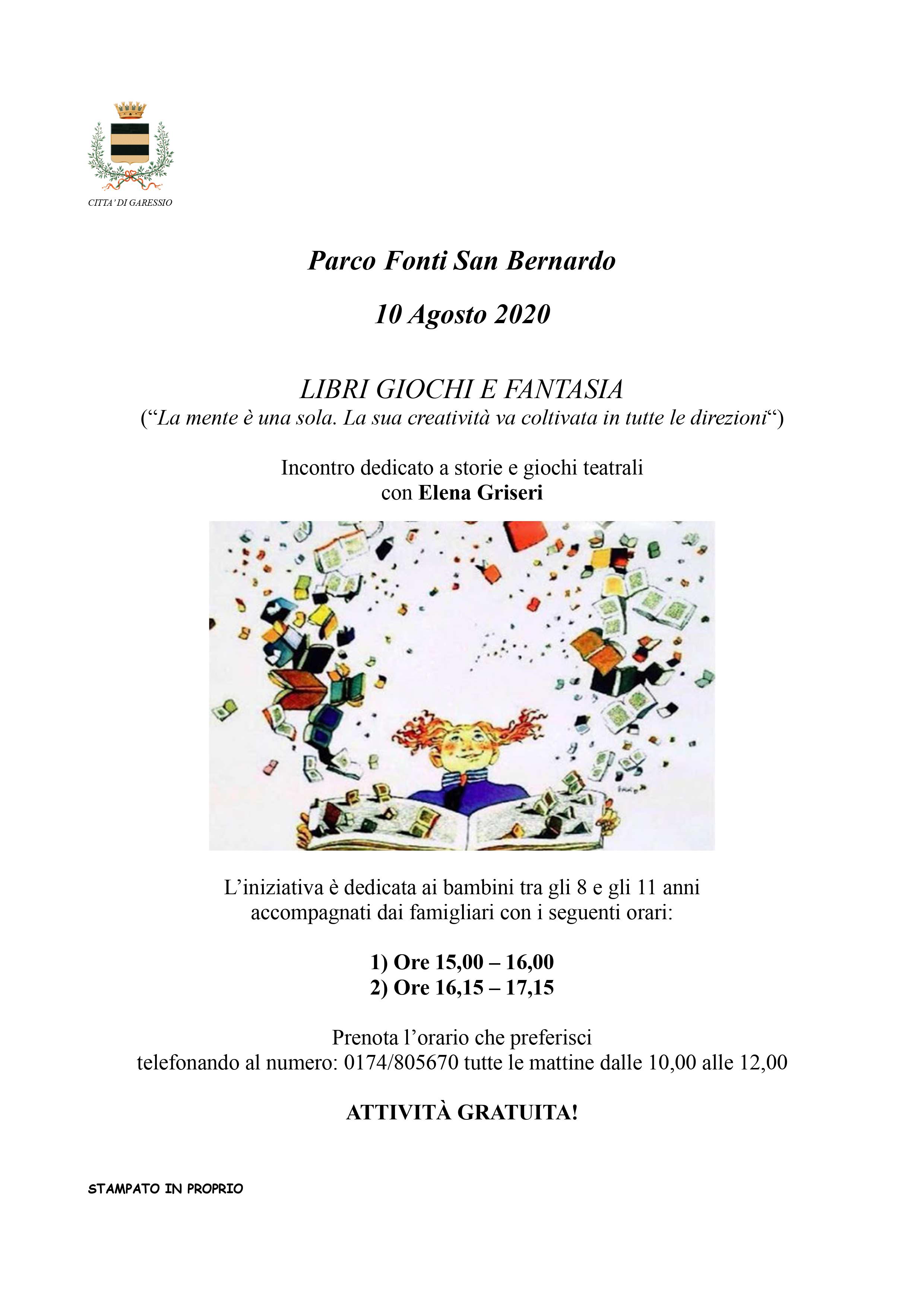 Lunedì 10 agosto 2020, presso il Parco Fonti San Bernardo, si svolgerà un incontro dedicato a storie e giochi teatrali con Elena Griseri.