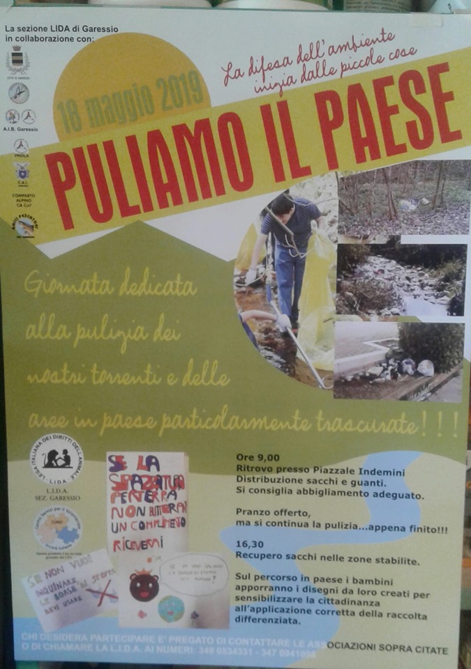 Si comunica che, a causa previsto maltempo, la giornata "Puliamo il paese" del 18 maggio è rinviata a data da destinarsi.