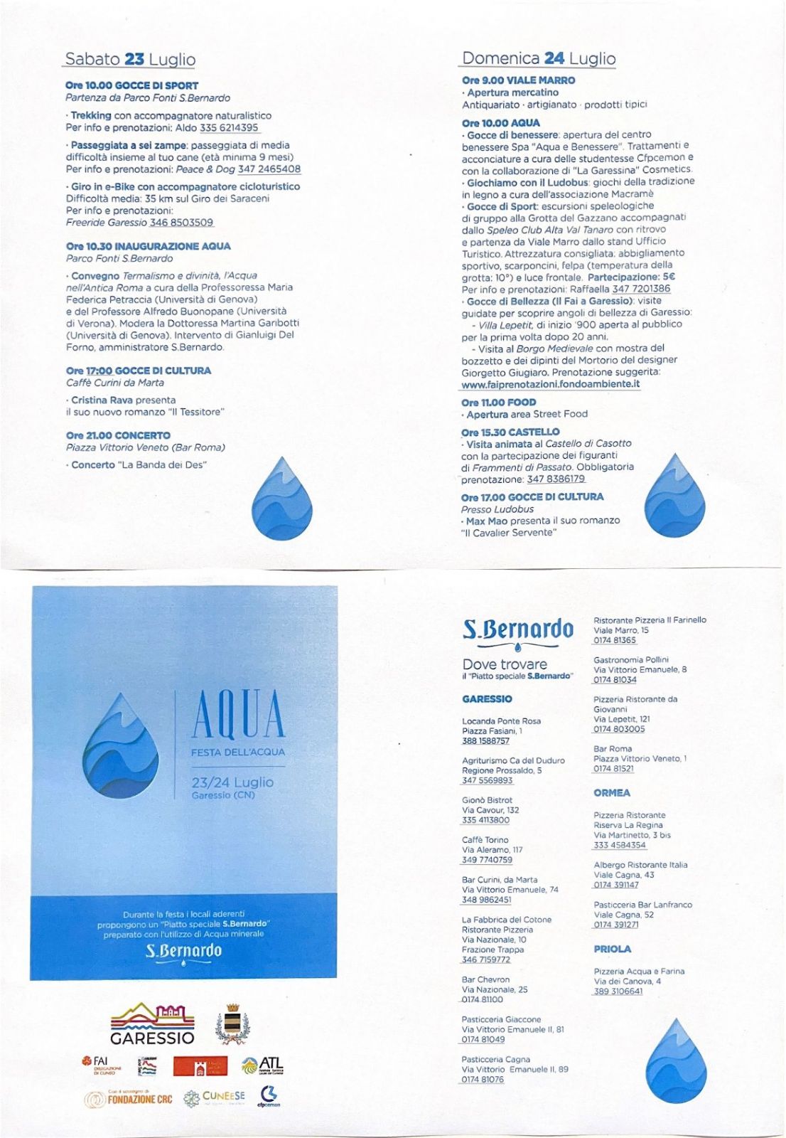 Sabato 23 e domenica 24 luglio si svolgerà la festa dell'acqua con il programma indicato nella locandina