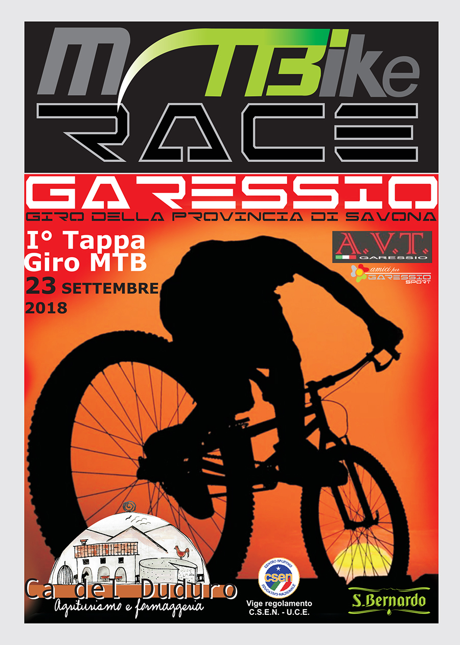 Domenica 23 settembre 2018, con ritrovo alle ore 8,00 presso l'Agriturismo Ca del Duduro e partenza alle ore 10,00, si svolgerà la 1^ tappa del giro MTB, con un percorso ad anello (km 5,1) da ripetere 4 volte.