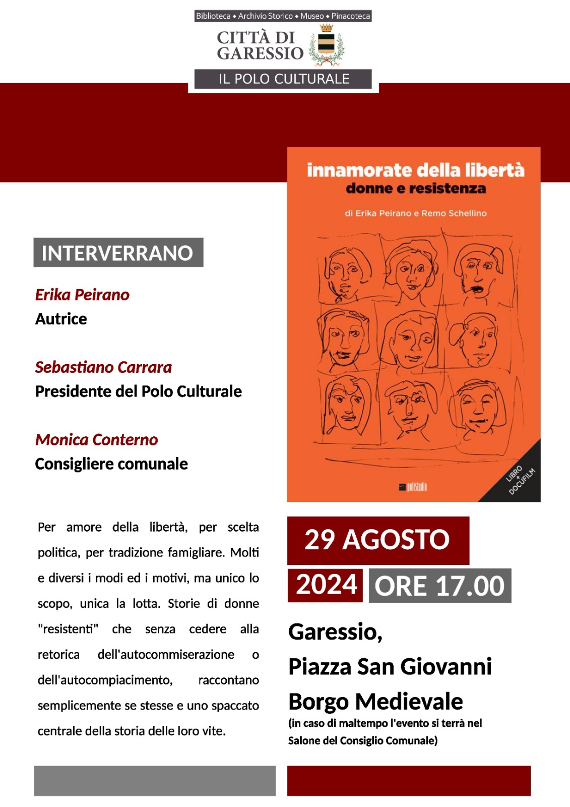 Presentazione libro di Erika Peirano e Remo Schellino " innamorate della libertà - donne e resistenza", in Piazza San Giovanni , 29-08-2024 alle ore 17,00