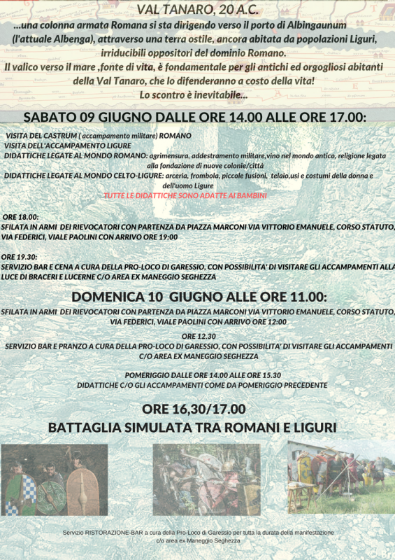 ore 16,30/17,00 battaglia simulata tra romani e liguri